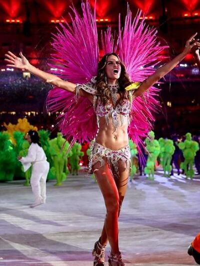 Συνοδευμένη από το θρύλο της σάμπα και του Καρναβαλιού, Ρενάτο Σορίζο χόρεψε με τον πασίγνωστο λικνιστικό τρόπο που όλοι ξέρουμε από τις πομπές στο αποκριάτικο Ρίο, με ένα αστραφτερό κοστούμι που κάλυπτε μονάχα τα επίμαχα σημεία του σώματός της. Τις προηγούμενες μέρες υποστήριξε φανατικά την πατρίδα της σε διάφορα αγωνίσματα ανεβάζοντας ενθουσιώδεις φωτογραφίες στο ίντερνετ. Η 31χρονη Ιζαμπέλ είναι «αγγελάκι» της Victorias Secret από το 2005 και έχει γίνει μούσα σε μεγάλες καμπάνιες του Armani και της Mac, αφού περπάτησε σε κορυφαίες πασαρέλες. Εχει ποζάρει για το Sports Illustrated και συγκαταλέγεται σε λίστες με τα πιο σέξι και ομορφότερα μοντέλα του πλανήτη. Μετά την τελετή λήξης οι φωτογράφοι τη συνέλαβαν στο αεροδρόμιο για αναχώρηση.