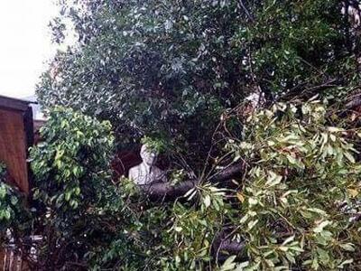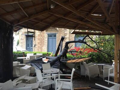 Στο κέντρο του χωριού έσπασαν δύο δέντρα απέναντι από τον σταθμό του τρένου, καταστρέφοντας ομπρέλες παρακείμενων καταστημάτων, ευτυχώς όμως όχι και την προτομή του αξέχαστου Διακοφτίτη ηθοποιού Διονύση Παπαγιαννόπουλου.