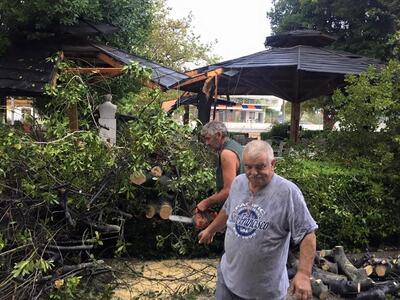 Ο δρόμος πίσω τα μαγαζιά έκλεισε λόγω της πτώσης των δέντρων, χάρη όμως στην άμεση επέμβαση του προέδρου της Δ.Κ. Διακοπτού κ. Βάσου Σταυρόπουλου και του επιτελείου του, η κυκλοφορία αποκαταστάθηκε γρήγορα, μιας και απομακρύνθηκαν τα κλαδιά.