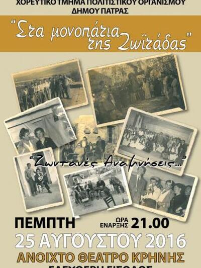 Η εκδήλωση με τίτλο «Στα Μονοπάτια της Ζωιτάδας – Ζωντανές Αναμνήσεις» θα πραγματοποιηθεί την Πέμπτη 25 Αυγούστου 2016 στις 21.00 με ελεύθερη είσοδο για το κοινό στο ανοικτό θέατρο της Κρήνης.
