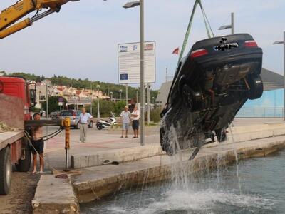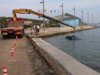 Ο οδηγός προσπάθησε να κάνει μια επιτόπου στροφή, ωστόσο το ολισθηρό οδόστρωμα τον «πρόδωσε» και οδήγησε το αυτοκίνητο -μετά από μια ανεξέλεγκτη πορεία- στο λιμάνι της πόλης.