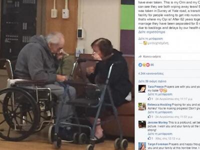 Μία πολύ συγκινητική φωτογραφία έχει γίνει viral τις τελευταίες ώρες στο Facebook. Δείχνει δύο ηλικιωμένους. να αποχαιρετούν ο ένας τον άλλο και ανέβηκε στο Διαδίκτυο από την εγγονή τους.