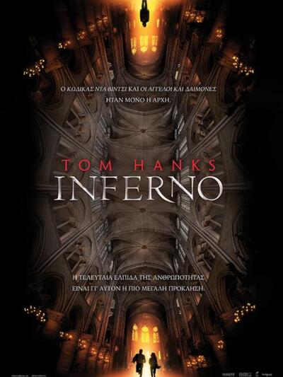 Στα Ster Cinemas στη Βέσο Μάρε έχει ήδη τοποθετηθεί το διαφημιστικό πόστερ της νέας ταινίας με τίτλο «Inferno» σε σκηνοθεσία του 62χρονου Αμερικανού δημιουργού Ρον Χάουαρντ. Πρόκειται για τη νέα ταινία με κεντρικό ήρωα τον καθηγητή Ρόμπερτ Λάνγκτον (τον υποδύεται και πάλι ο 60χρονος Τομ Χανκς) που βασίζεται στο ομώνυμο μυθιστόρημα του Νταν Μπράουν του μπεστ σέλερ βιβλίου «Κώδικας Ντα Βίντσι».