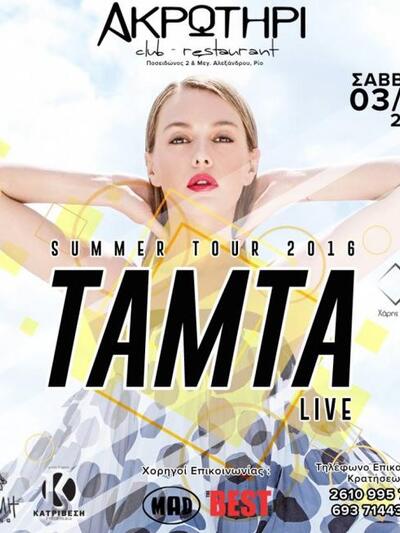 Αυτό το Σάββατο, η εντυπωσιακή Τάμτα, μετά τις εμφανίσεις της με Γιώργο Σαμπάνη και Ντέμυ στο Cabaret Romeo και λίγο πριν ξαναπάρει τη θέση του κριτή στο X FACTOR 2, έρχεται για ένα εκρηκτικό live party!