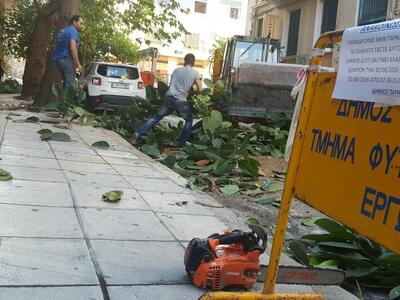Αυτές τις εικόνες αντίκρυσαν σήμερα το πρωί κάτοικοι και επιχειρηματίες που δραστηριοποιούνται στην οδό Πατρέως και στη συμβολή της με την Καραϊσκάκη. Τρεις πελώριοι φύκοι είχαν ήδη κλαδευτεί σε προχωρημένο στάδιο για να ξεκινήσει σταδιακά η ολική κοπή και εκρίζωσή τους. Άνθρωποι που μεγάλωσαν και έπαιζαν σαν παιδιά κάτω από αυτά τα δέντρα ξεσηκώθηκαν. Οπως είπαν, θα δεθούν πάνω τους αν μπορέσουν να αποτρέψουν έτσι την κοπή τους.