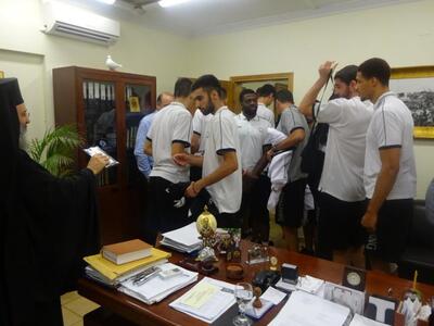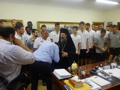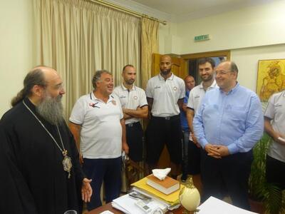 Ο Σεβασμιώτατος ευχήθηκε στον πρόεδρο της ομάδας, Ευάγγελο Λιόλιο, στο Διοικητικό Συμβούλιο, στους προπονητές και στους παίκτες υγεία, δύναμη και ευλογία από τον Θεό και τους πρόσφερε μαζί με τις πατρικές ευχές του, από μία εικόνα ου Άγιου απόστολου Ανδρέα.