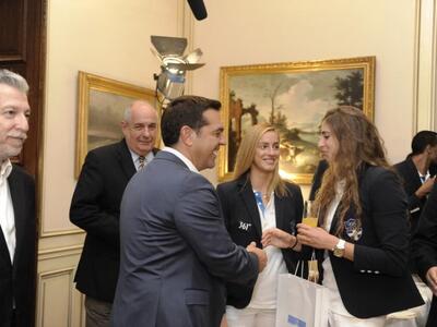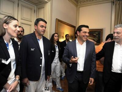 Τους αθλητές που τίμησαν τα ελληνικά χρώματα με τα μετάλλια που κατέκτησαν στους Ολυμπιακούς Αγώνες του Ρίο, αλλά και αυτούς που έκαναν το καλύτερο δυνατό εκπροσωπώντας επάξια τη χώρα μας στην μεγάλη γιορτή του αθλητισμού, υποδέχτηκε  στο Μέγαρο Μαξίμου, ο πρωθυπουργός Αλέξης Τσίπρας. Η χρυσή και χάλκινη Ολυμπιονίκης της σκοποβολής Άννα Κορακάκη, ο «ασημένιος» Σπύρος Γιαννιώτης, οι «χάλκινοι» ιστιοπλόοι μας Μάντης και Καγιαλής ήταν ανάμεσα στα πρόσωπα που συνάντησε ο πρωθυπουργός και είχε σε όλους να πει καλά λόγια.