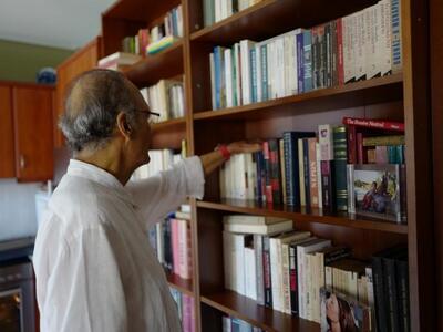 Ο Αλέξανδρος Βέλιος στο σαλόνι του σπιτιού του, με τον Δημήτρη Αλικάκο