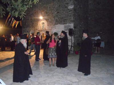 Τέλος, μετέφερε τις εγκάρδιες ευχές του Σεβασμιωτάτου Μητροπολίτου Πατρών κ. Χρυσοστόμου προς την Καθηγουμένη Μοναχή Αγνή και την συνοδεία της, καθώς και στους πιστούς οι οποίοι είχαν κατακλύσει τους χώρους της Ιεράς Μονής.