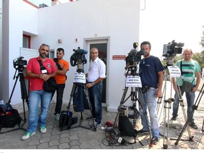 Την ώρα που ο Αλέξης Τσίπρας παραχωρεί την καθιερωμένη συνέντευξη τύπου στους εκπροσώπους όλων των μέσων ενημέρωσης, έξω από το Βελλίδειο ολα τα τηλεοπτικά συνεργεία μεταξύ αυτών και της ΕΡΤ3 έχουν τοποθετήσει στο τρίποδο που στηρίζεται η κάμερα, χαρτιά με κοινό μήνυμα που λέει ότι «Το μαύρο δεν έχει αποχρώσεις».