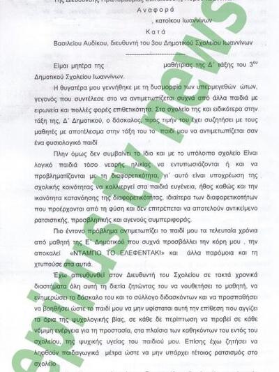 Τελικά, οι γονείς της μαθήτριας έκαναν αίτηση για μετεγγραφή της σε άλλο δημοτικό σχολείο.