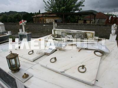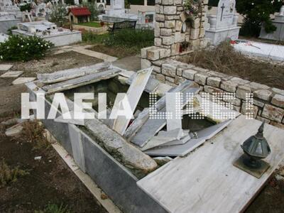 Στο νεκροταφείο Αγίου Ηλία, που το 2008 είχε υποστεί και πάλι ζημιές από ανεμοστρόβιλο προκλήθηκαν ζημιές επίσης σε περίπου δέκα μνήματα σε ένα τμήμα του.
