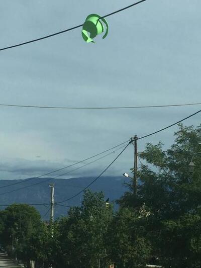 Μπορεί η ισχυρή καταιγίδα χθες τα ξημερώματα να προκάλεσε ζημιές, κυρίως με πτώσεις δέντρων, είχε όμως και...την αστεία της πλευρά.Ο λόγος για μια πλαστική λεκάνη, η οποία αφού 'ταξίδεψε' για λίγο χορεύοντας με τον θυελλώδη αέρα, τελικά κρεμάστηκε στα εναέρια καλώδια, επί της κεντρικής οδού της Αβύθου. Αφού δεν προσγειώθηκε σε κανένα κεφάλι, πάλι καλά.