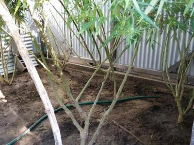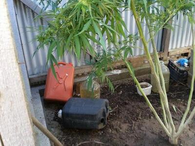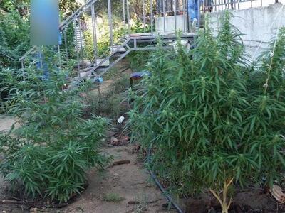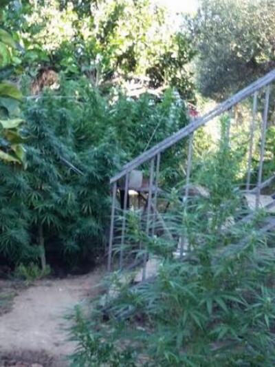 Στην αυλή της οικίας, καθώς και σε διπλανό παράπηγμα, οι αστυνομικοί βρήκαν και κατέσχεσαν δεκαέξι, συνολικά, δενδρύλλια κάνναβης, που καλλιεργούσε ο δράστης και το ύψος τους έφτανε μέχρι τα τρία μέτρα.