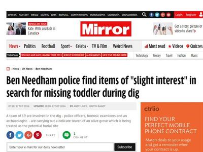 Σύμφωνα με την Daily Mirror, κατά τη δεύτερη μέρα των εκσκαφών και των ερευνών «η αστυνομία βρήκε αντικείμενα τα οποία μπορεί να προέρχονται από τα ρούχα του παιδιού».