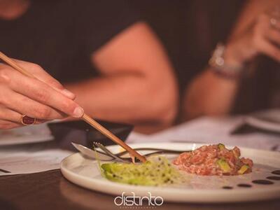 Το sushi menu περιλαμβάνει όλα τα κλασικά, δημοφιλή πιάτα όπως rolls, nigiri, sashimi, καθώς και wakami και sashimi salads, μαζί με πρωτότυπα ορεκτικά και τα special Distinto rolls με fusion γαστριμαργικό άγγιγμα. Soft shell crub, Teriyaki salmon, Dragon roll προμηνύονται μεγάλα hits… Eπιπλέον, θα προσφέρονται οριένταλ κοκτέιλ και σάκε.