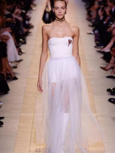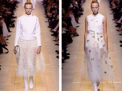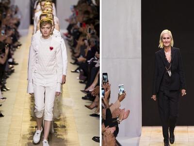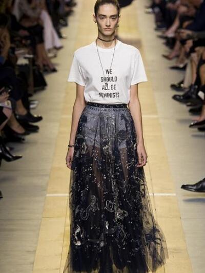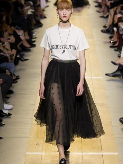 Η πρώην σχεδιάστρια του οίκου Valentino, Maria Grazia Chiuri «άνοιξε τα χαρτιά της» στην πρώτη επίδειξη του μυθικού παριζιάνικου οίκου Dior με τη σφραγίδα της, στο Musee Rodin. Ηταν ένα από τα πιο πολυαναμενόμενα shows της φετινής Paris Fashion Week αφού ο κόσμος της μόδας αδημονούσε για το καινούριο «άγγιγμα» και τον τρόπο που θα ανανεώσει την περίφημη fashion luxury αυτοκρατορία. Με εμπνεύσεις το μπαλέτο, τον αθλητισμό και την τράπουλα ταρώ η πασαρέλα γέμισε τούλια, ζορζέτες, μουσελίνες, λουριά, κορσέδες, κεντήματα. Τιράντες με το logo Dior αλλά και συνθήματα σε τι-σερτ υπογράμμιζαν το μεγάλο «όνομα» του οίκου με τα γυναικεία πλέον ηνία αν και το όλο κλίμα θύμιζε αρκετά Valentino.