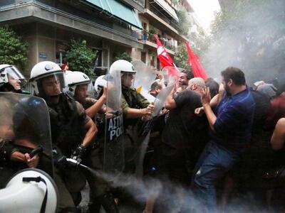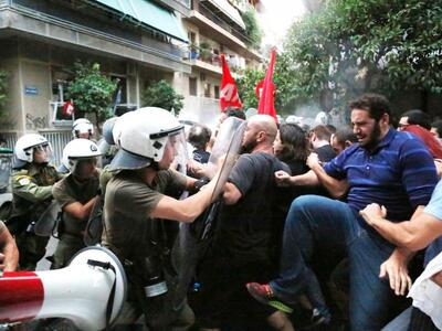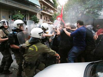 Αντιμέτωποι με τα ΜΑΤ ήρθαν το απόγευμα της Κυριακής διαδηλωτές που ήθελαν να προσεγγίσουν το Σκοπευτήριο της Καισιαριανής, όπου μιλούσε ο πρωθυπουργός Αλέξης Τσίπρας. Η αστυνομία δεν επέτρεψε στους πολίτες να προχωρήσουν και έγινε χρήση χημικών.