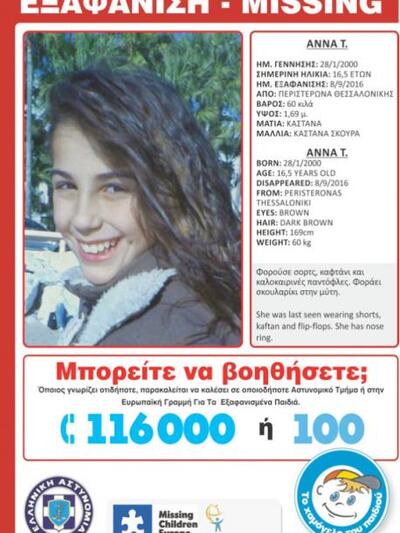 Η 16χρονη διέμενε στο παρελθόν στη Γερμανία με τη μητέρα της και την αδελφή της. Όταν, όμως, η μητέρα της αποφάσισε να γυρίσει στην Ελλάδα μετακόμισε στο σπίτι του πατέρα της, ο οποίος είχε κερδίσει δικαστικά την επιμέλειά της. Οι γονείς της είχαν να μιλήσουν μεταξύ τους πολλά χρόνια και αυτός ήταν και ο λόγος που ο πατέρας της πίστευε για αρκετές ημέρες μετά την εξαφάνιση ότι το παιδί του βρίσκεται με τη μητέρα του στην Αθήνα. Το αποτέλεσμα ήταν η εξαφάνιση να δηλωθεί με 14 ημέρες καθυστέρηση στο Αστυνομικό Τμήμα Απολλωνίας.