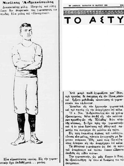 Νικόλαος Ανδριακόπουλος: Το 1896 συμμετείχε σαν φίλαθλος στην πρώτη Ολυμπιάδα της Αθήνας, καθότι ο Παναχαϊκός είχε αποχωρήσει από τούς Αγώνες. Αναδείχτηκε πρώτος ολυμπιονίκης στην Αναρρίχηση επί κάλω στις 29 Μαρτίου 1896 με χρόνο 23.4.