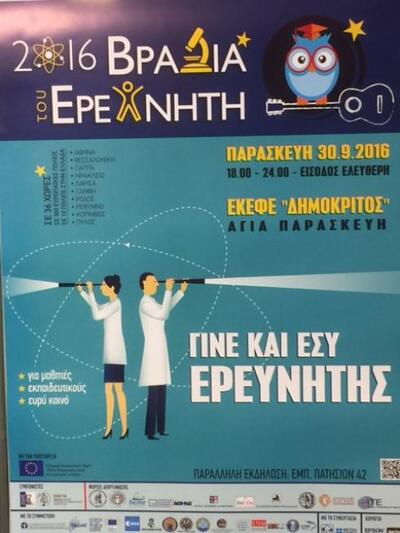 Με ιδιαίτερη επιτυχία ολοκληρώθηκε η παρουσία του τμήματος Μηχανικών Πληροφορικής του Τεχνολογικού Εκπαιδευτικού Ιδρύματος Δυτικής Ελλάδος στη Βραδιά Ερευνητή 2016, η οποία διοργανώθηκε στις 30 Σεπτεμβρίου από το ΕΚΕΦΕ ΔΗΜΟΚΡΗΤΟΣ. Το τμήμα συμμετέχει με το Εργαστήριο Σχεδιασμού Ενσωματωμένων Συστημάτων & Εφαρμογών (http://esda-lab.cied.teiwest.gr), το οποίο παρουσίασε ερευνητικά πρωτότυπα που έχουν αναπτυχθεί ή χρησιμοποιούνται για έρευνα από τους φοιτητές του τμήματος Μηχανικών Πληροφορικής.
