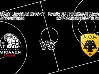 Ξεκίνησε η διάθεση των εισιτηρίων για το παιχνίδι της 1ης αγωνιστικής του πρωταθλήματος της Basket League 2016-17 ανάμεσα στον Απόλλωνα Πάτρας CARNA και την ΑΕΚ.