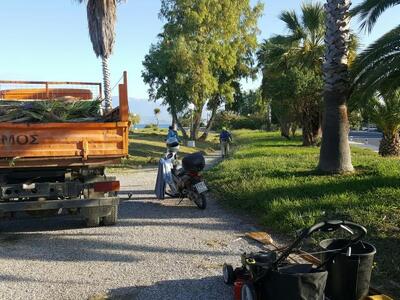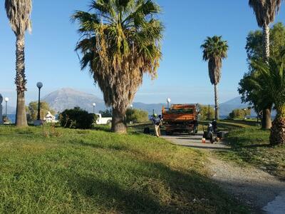 Εργασίες καλλωπισμού και συντήρησης στο μικρό πάρκάκι της Ηρ. Πολυτεχνείου, έκαναν σήμερα το πρωί συνεργεία του δήμου Πατρέων. Στο σημείο έγινε αποψίλωση και καθαρισμός από αγριόχορτα, ενώ κόπηκαν και κλαδιά από τους φοίνικες.
