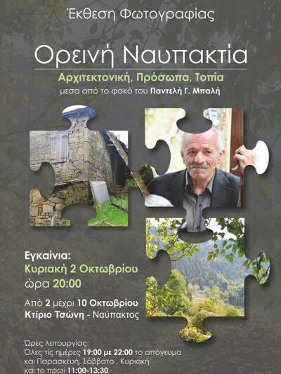 Τα εγκαίνια της έκθεσης φωτογραφίας "ΟΡΕΙΝΗ ΝΑΥΠΑΚΤΙΑ / Αρχιτεκτονική –Πρόσωπα –Τοπία" του Παντελή Μπαλή, έγιναν στις 2 Οκτωβρίου στη Ναύπακτο.