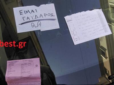 Όπως θα δείτε και στις φωτογραφίες, ο ασυνείδητος οδηγός πέρα από την κλήση της τροχαίας δέχτηκε εγγράφως και την οργή πεζών. ''Βλάκα έχεις αυτοκίνητο κυβικών, αλλά σου λείπει η παιδεία'' ήταν η τελευταία πρόταση του σημειώματος που ήταν κολλημένο στο τζάμι.