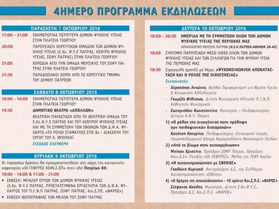 Περιλαμβάνονται ποικίλες δράσεις όπως ενημερωτικά περίπτερα, παρουσίαση χορευτικών και θεατρικής παράστασης, έκθεση φωτογραφίας και μπαζάρ έργων των δομών, ενώ την τελευταία ημέρα θα διεξαχθεί ενημερωτική Ημερίδα με θέμα: «Ψυχοκοινωνική Αποκατάσταση και ο Ρόλος της Οικογένειας».