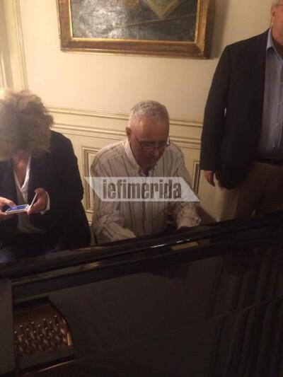 Κάποια στιγμή στο πιάνο που διαθέτει το πρωθυπουργικό μέγαρο κάθισε ο Κώστας Ζουράρις. Από το κλαβιέ ξεχύθηκε η μελωδία του τραγουδιού «Ασε με να φύγω, σε παρακαλώ» που ερμηνεύει μοναδικά η Αλέκα Κανελλίδου.Εκεί, ανέλαβε η Ελενα Κουντουρά να τραγουδήσει.Από το μπαλκόνι του Μαξίμου ακούγονταν και άλλα τραγούδια, όπως το «Σύνορα η αγάπη δε γνωρίζει», ενώ ο Κ. Ζουράρις έπαιξε και αντάρτικα τραγούδια, αλλά και Μπιθικώτση, όπως το «Στη Δραπετσώνα πια δεν έχουμε ζωή». Το πιάνο πλησίασε κάποια στιγμή και ο πρωθυπουργός και αστειευόμενος του είπε: «Η τελευταία φορά που έπαιξε πιάνο εδώ κάποιος ήταν ο Βαρουφάκης. Κανόνισε!».