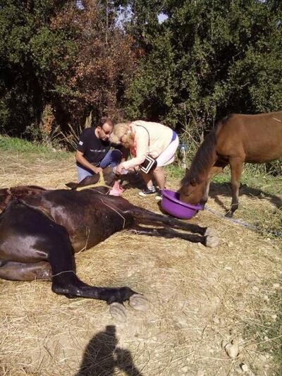 Ο ειδικός σε θέματα αλόγων κτηνίατρος ήρθε από το Ναύπλιο για να δει από κοντά και να μεταφέρει σε ειδικό χώρο εφόσον αυτό κριθεί αναγκαίο το κουρασμένο άλογο. "Η μαύρη φοράδα βρίσκεται σε ειδικό χώρο στην Τσακωνιά Αρκαδιάς, όπου μεταφέρθηκε από την Πάτρα χθες, προκειμένου να συνεχιστεί η θεραπεία της" γράφει ο ιδιος.