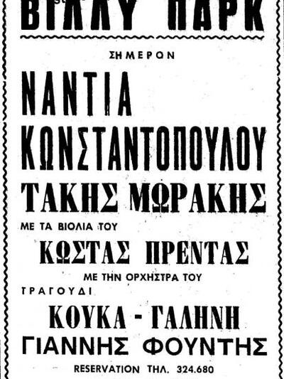 Στο μεταξύ ο Στέλιος Αποστολόπουλος είχε στο αρχείο του και φρόντισε να το αναρτήσει στη σελίδα του στο facebook, ένα πρόγραμμα από εμφάνιση της Νάντιας Κωνσταντοπούλου με τον Τάκη Μωράκη στην Πάτρα, στο κέντρο Villy’s Park, ένα από τα αγαπημένα στέκια νυχτερινής διασκέδασης παλιότερα των Πατρινών.
