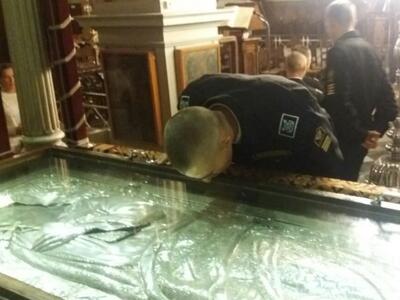 Οἱ Ρῶσοι Ναυτικοὶ ἀφοῦ προσκύνησαν τὴν ἁγία Κάρα, τὸν Σταυρὸ τοῦ Μαρτυρίου καὶ τὸν τάφο τοῦ Ἁγίου Ἀποστόλου Ἀνδρέου, ἔλαβαν ἀπὸ τὸν Σεβασμιώτατο ὡς εὐλογία ἀπὸ μιά εἰκόνα τοῦ Ἁγίου Ἀνδρέου καὶ ἕνα τευχίδιο μὲ τὸν ἱστορικό του Ναοῦ τοῦ Ἁγίου Ἀνδρέου στὰ Ρωσικά.