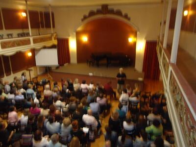 Πάνω από 160 ακροατές προσέλκυσε η σαββατιάτικη ομιλία του πατρινού καθηγητή της ΑΣΚΤ και επιμελητή της Εθνικής Πινακοθήκης Ανδρέα Ιωαννίδη στη νοσταλγική και αρχοντική αίθουσα εκδηλώσεων του Ωδείου της Φιλαρμονικής. Μιλάμε ασυζητητί για προσωπικό «γκελ» και «ρεύμα». Υπήρξαν και άτομα που έμειναν όρθια για να απολαύσουν τον αγαπημένο ειδήμονα, που είχε κατακτήσει πολύ κόσμο, όταν δίδασκε πριν χρόνια στο Παλαιό Νοσοκομείο. Και ήταν «ίδιος»: χιουμορίστας, αυτοσαρκαστικός, άμεσος, ζεστός, χαριτωμένα αθυρόστομος όπως ακριβώς τον γνώρισαν τότε … Θέμα της βραδιάς «Προς τι η τέχνη:»