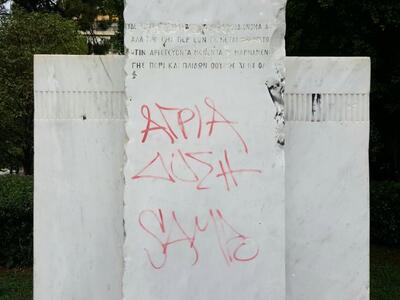Μέχρι τα ανάγλυφα γράμματα έχουν σμιλεύσει για να μη διαβάζεται η επιγραφή