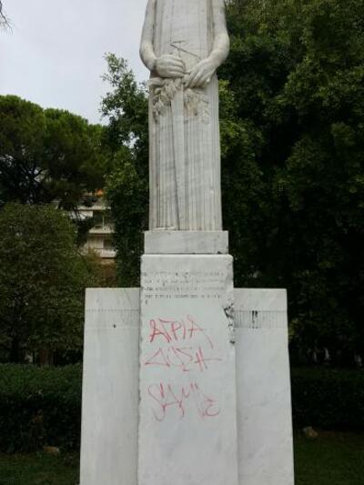 Αλλεπάληλες οι φορές που τα συνεργεία του Δήμου Πατρέων με ειδικά καθαριστικά έχουν προσπαθήσει να βγάλουν πάνω από το άγαλμα τις μπογιές και τα άλλα συνθήματα.