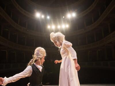 Για να ζωντανέψουμε την ροκοκό ατμόσφαιρα του έργου, οι ηθοποιοί ασκήθηκαν σε τεχνικές της Comedia dell’Arte και στην grammlote. Την ιδιαίτερη αυτή «εκφραστική» γλώσσα της Comedia όπου οι «θεατρίνοι» μιλάνε ακαταλαβίστικα και παντομιμικά αλλά γίνονται απόλυτα κατανοητοί από το κοινό.