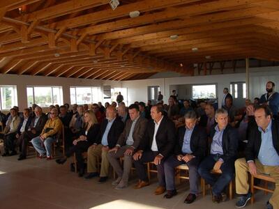 Αμέσως μετά, στην αίθουσα του Δημαρχείου πραγματοποιήθηκε σύσκεψη και διάλογος με αγρότες, ομάδες παραγωγών, προέδρους ΤΟΕΒ καθώς επίσης στελέχη των τοπικών ΕΑΣ, για τα οξυμένα προβλήματα που αντιμετωπίζει η περιοχή και γενικότερα ο αγροτικός τομέας.