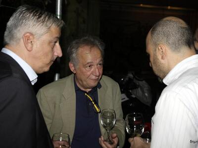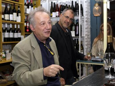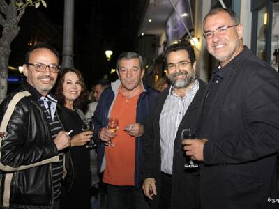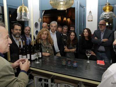 Ο οίνος έρρεε άφθονος, η ατμόσφαιρα ήταν ιδιαίτερη, βοηθούντος και του καιρού με τους φίλους των κρασιών του Άγγελου Ρούβαλη να κάνουν ...κατάληψη και στο πεζοδρόμιο της Μαιζώνος.