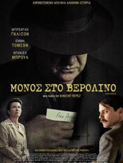 Μία νέα κινηματογραφική ταινία που μάλιστα βασίζεται σε μία απίστευτη αληθινή ιστορία, με τίτλο «Μόνος στο Βερολίνο – Alone in Berlin» θα βγει στις ελληνικές κινηματογραφικές αίθουσες στις 3 Νοεμβρίου 2016 σε διανομή της Odeon και αναμένεται να έρθει για προβολή και στην Πάτρα, στα Στερ σίνεμας. Το φιλμ που μας μεταφέρει στο Βερολίνο του Β’ Παγκοσμίου Πολέμου, έχει για πρωταγωνιστές τους πάντα υπέροχους Έμμα Τόμσον και Μπρένταν Γκλίσον.