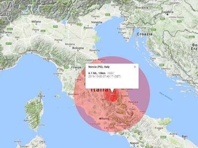 Νέα ισχυρή σεισμική δόνηση μεγέθους 6,1 βαθμών σημειώθηκε στις 7:40 το πρωί της Κυριακής (τοπική ώρα) στην Ιταλία. Το Ευρωμεσογειακό  Κέντρο τον υπολογίζει 6,7 Ρίχτερ ενώ Αμερικανικό Κέντρο σε 7,1 Ρίχτερ.