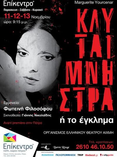 Το Επίκεντρο+ παρουσιάζει τον Νοέμβριο σε avant-premiere το θεατρικό μονόλογο της Μαργκερίτ Γιουρσενάρ " ΚΛΥΤΑΙΜΝΗΣΤΡΑ ή το έγκλημα" με τη Φωτεινή Φιλοσόφου.