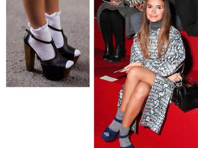 Όμως και άλλα brands όπως Prada (βελούδινα πέδιλα με γκρι κάλτσες με ρόμβους), Valentino (βελούδινα πέδιλα με nude ριγωτά καλσόν) Fendi (κάλτσες με γούνινα παντοφλάκια) κ.α. υποκλίνονται στην τάση η οποία περιφρονεί την «καθωσπρέπει» κομψότητα και θυμίζει φωτογραφίσεις περιοδικών.