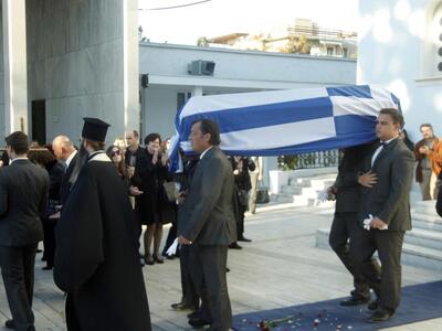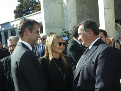 Στην κηδεία παραβρέθηκαν εκ μέρους της νυν κυβέρνησης ο Υπουργός Παιδείας Νίκος Φίλης, ο πρόεδρος της ΝΔ Κυριάκος Μητσοτάκης με την σύζυγο του Μαρέβα, ο Ευάγγελος Βενιζέλος, ο πρώην πρωθυπουργός Κώστας Σημίτης με την σύζυγο του Δάφνη, η πρώην σύζυγος του Γιώργου Παπανδρέου, Αντα, η οποία είχε θερμό χαιρετισμό με τον Αντρίκο Παπανδρέου, ο Κώστας Λαλιώτης, ο Νίκος Κιάος, ο Δημήτρης Ρέππας, ο Δημήτρης Κρεμαστινός, ο Τηλέμαχος Χυτήρης, ο Δημήτρης Τσοβόλας, ο πρόεδρος της ΕΟΕ Σπύρος Καπράλος κ.α.