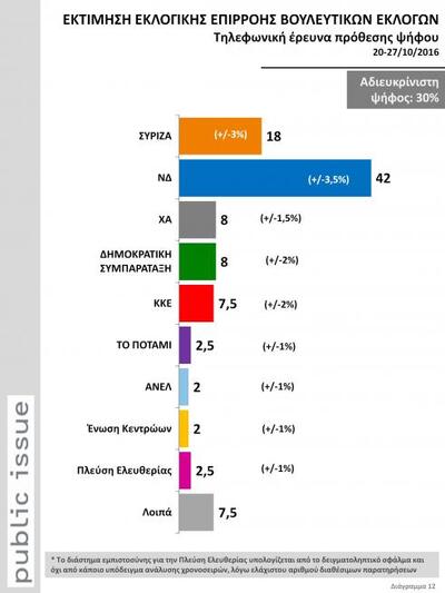 Με βάση την τηλεφωνική έρευνα της Public Issue στην εκτίμηση πολιτική επιρροής με αναγωγή προκύπτουν τα εξής: