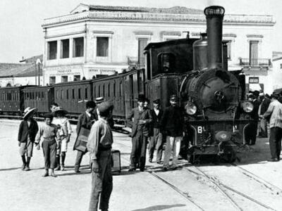 Στην ασπρόμαυρη φωτο φαίνεται η ιστορική στιγμή που καταφθάνει για πρώτη φορά στην Πάτρα ατμομηχανή.