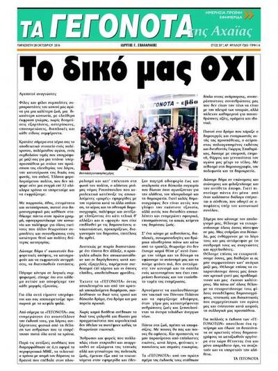 Οι λόγοι για τους οποίους οδηγήθηκε άλλη μια ιστορική εφημερίδα της Πάτρας σε «λουκέτο», εξηγούνται στο τελευταίο πρωτοσέλιδο των «Γεγονότων» υπό τον τιτλο «Το δικό μας ΟΧΙ», όπου μεταξύ άλλων τονίζονται τα εξής: