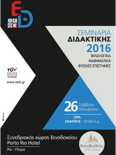 Το Σάββατο 26 Νοεμβρίου διοργανώνεται για 1η φορά στην Πάτρα το 5ο Σεμινάριο Διδακτικής της Ομοσπονδίας Εκπαιδευτικών Φροντιστών Ελλάδας (Ο.Ε.Φ.Ε., www.oefe.gr) στο Porto Rio.