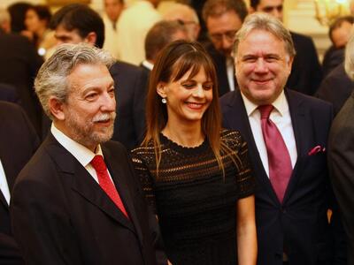 Εντυπωσιακή ήταν η εμφάνιση της νέας υπουργού Πολιτισμού Λυδίας Κονιόρδου, η οποία προσέθεσε στο όλο λουκ μια πιο «σοφιστικέ» πινελιά με τη βοήθεια του layering.